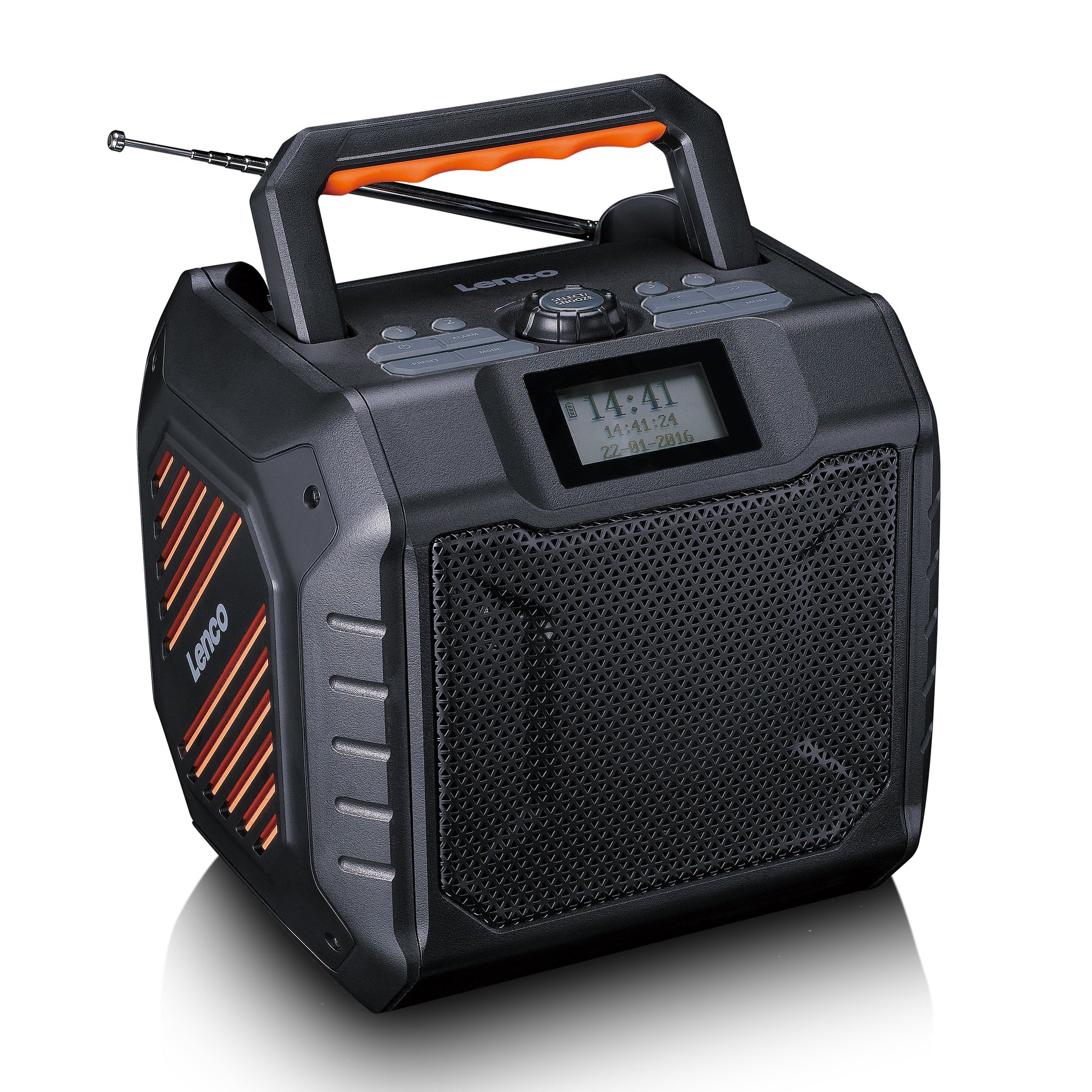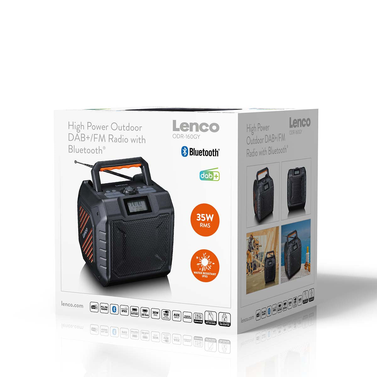 Der Lenco ODR-160GY ist ein leistungsstarkes tragbares DAB+/FM-Radio mit Bluetooth® und einem integrierten wiederaufladbaren Akku, der eine Akkulaufzeit von bis zu 20 Stunden bietet. Das Radio ist gemäß IPX5 wasserabweisend und verfügt über ein robustes Design, wodurch es sich hervorragend als Baustellenradio oder Outdoor-Radio eignet. Dank des Tragegriffs an der Oberseite des ODR-160GY lässt sich das Radio mühelos überallhin mitnehmen. Zusätzlich verfügt das Radio über eine Powerbank-Funktion, einen passiven Bass-Radiator, einen integrierten Equalizer und eine Weckfunktion. Egal, ob drinnen oder draußen – mit diesem robusten Radio sind Sie stets auf kraftvollen Klang und maximale Benutzerfreundlichkeit angewiesen. Erleben Sie selbst den Komfort und die Vielseitigkeit des ODR-160GY, dem leistungsstarken Nachfolger des beliebten ODR-150GY mit verbesserten Funktionen!