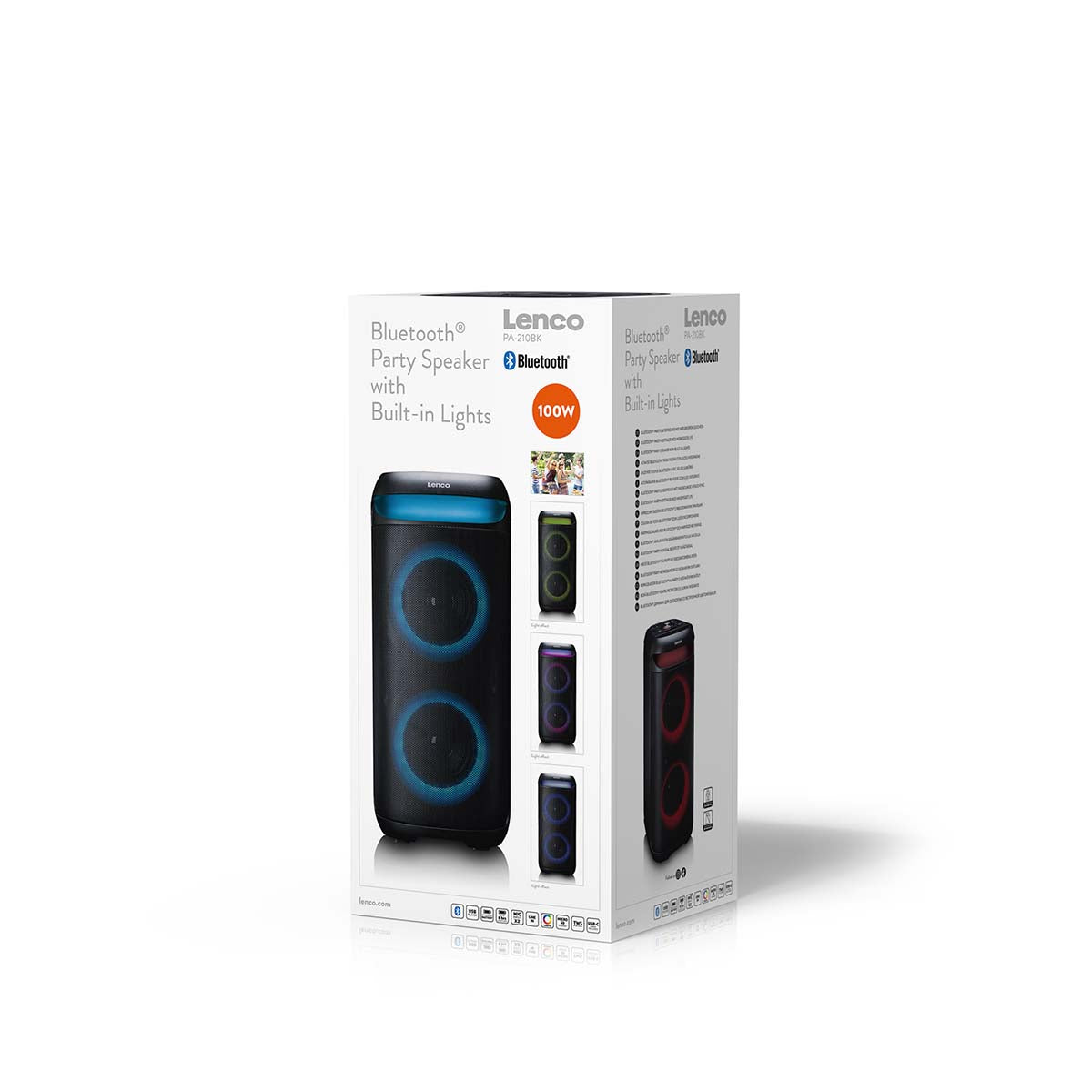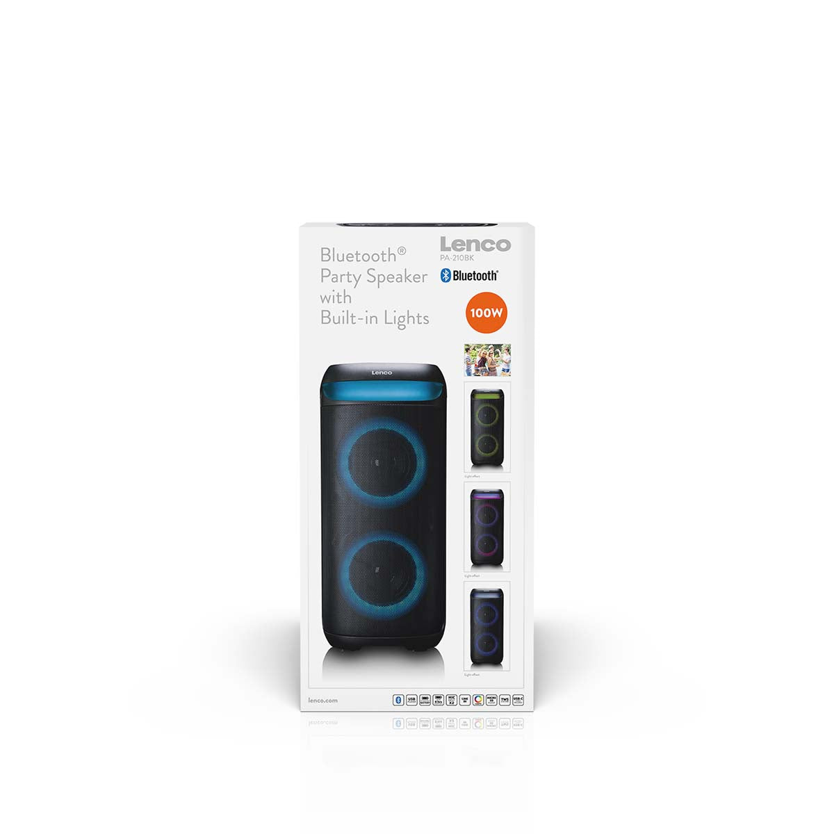Lenco PA-210BK - Bluetooth® Party-Lautsprecher mit LED-Lichteffekten - 100 W Leistung, TWS, USB, bis zu 12 Stunden Akkulaufzeit - Schwarz