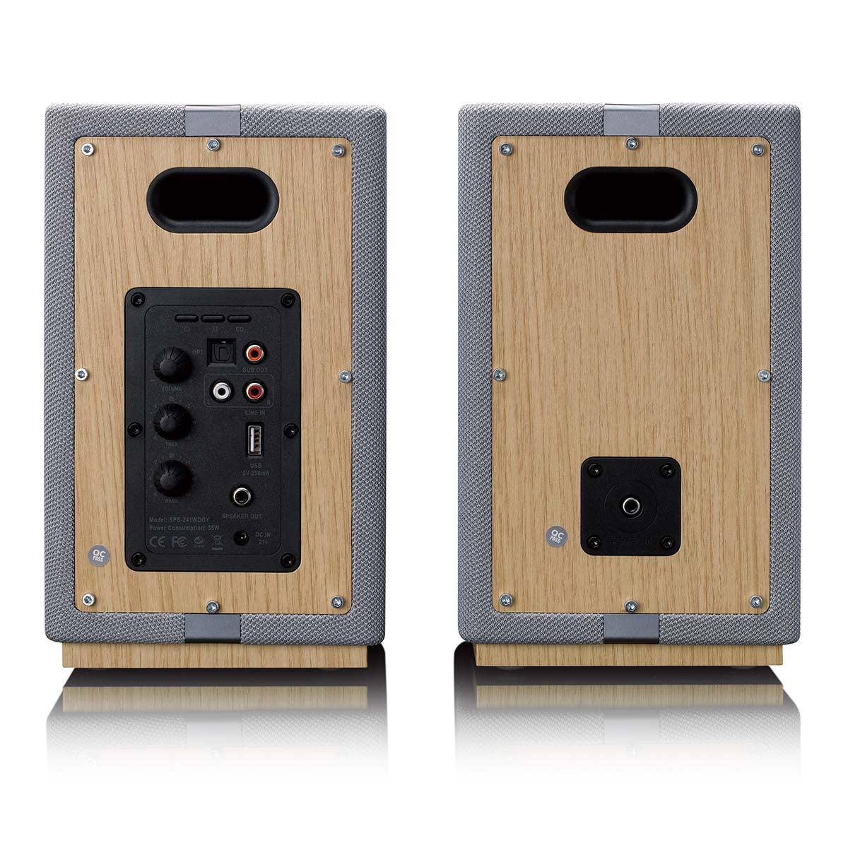 Die SPB-241WDGY lässt sich dank ihrer umfangreichen Anschlussmöglichkeiten nahtlos in jedes Audiosystem integrieren: RCA, Optical In, Subwoofer Out und USB. Schließen Sie ganz einfach Ihren Plattenspieler, Fernseher, Ihre Spielkonsole oder einen Subwoofer an – für das ultimative Klangerlebnis. Ob Sie ein minimalistisches Setup oder eine vollständige HiFi-Anlage bevorzugen, diese Lautsprecher bieten die Flexibilität, die Sie benötigen.