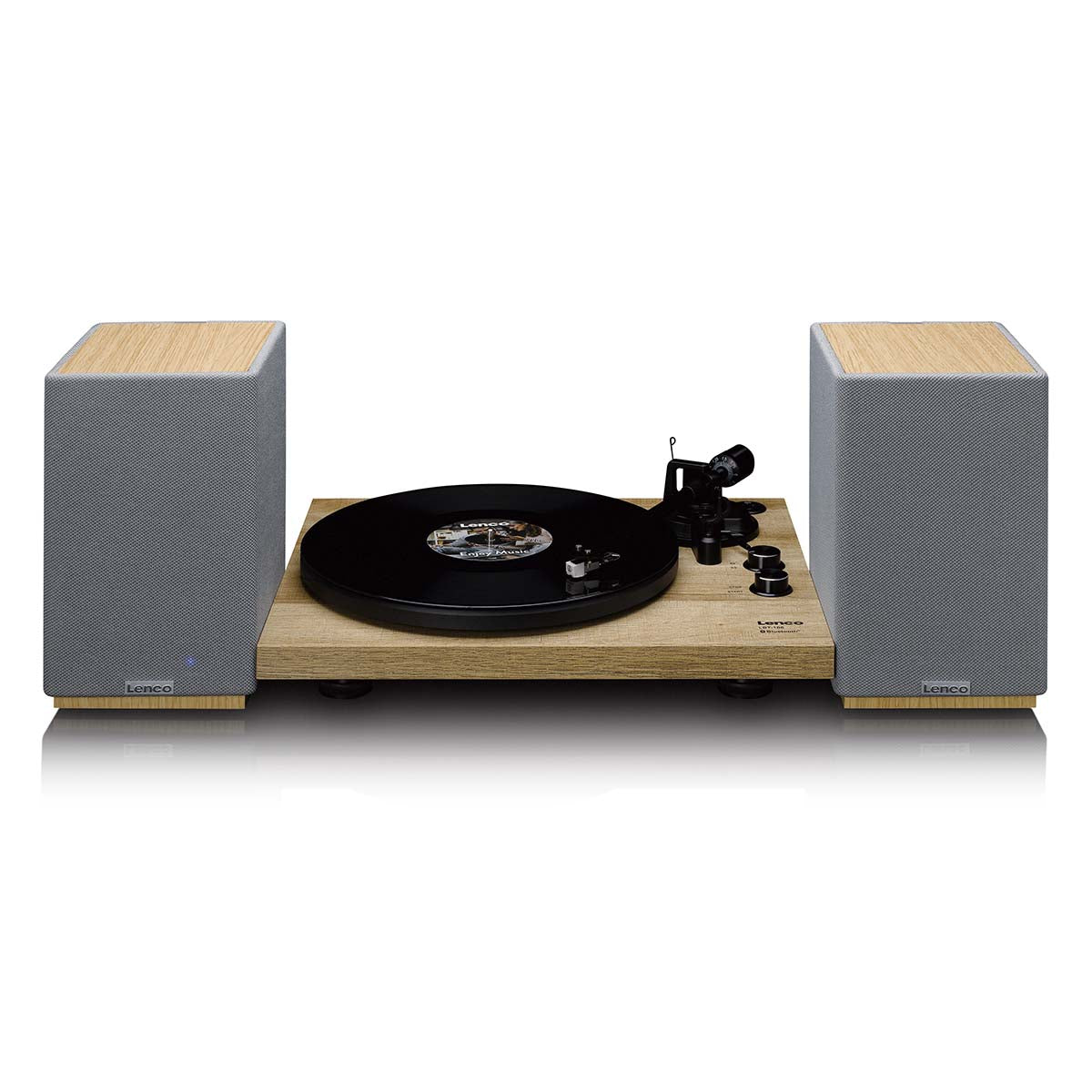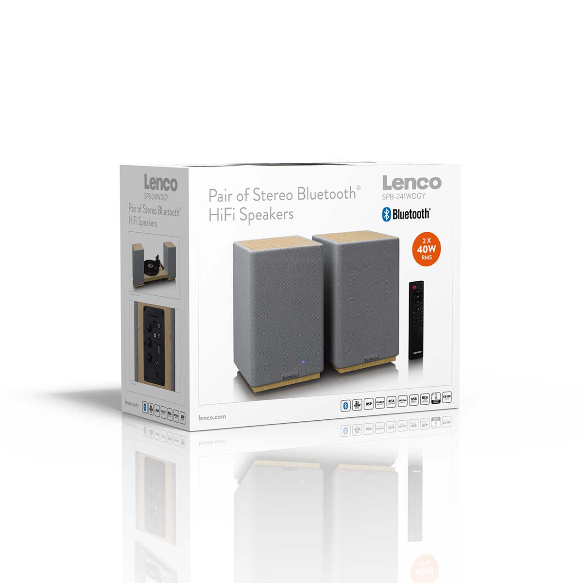 Lenco SPB-241WDGY - Set aus 2 HiFi Stereo Bluetooth® Lautsprechern - Kraftvoller Klang in stilvollem Design - Holz/Grau