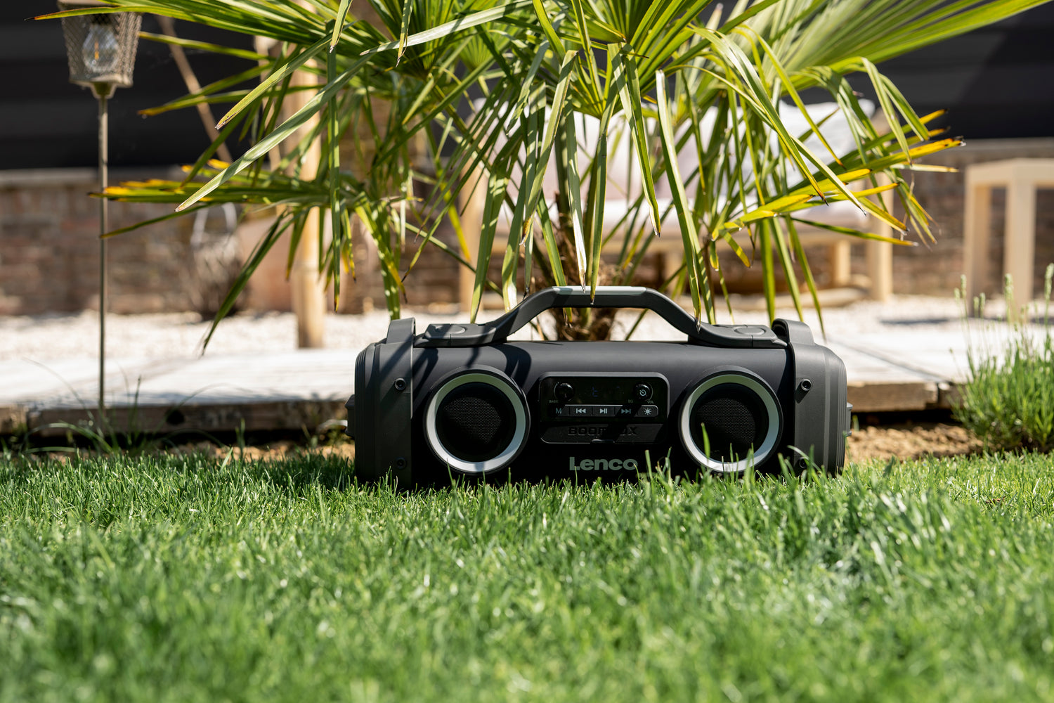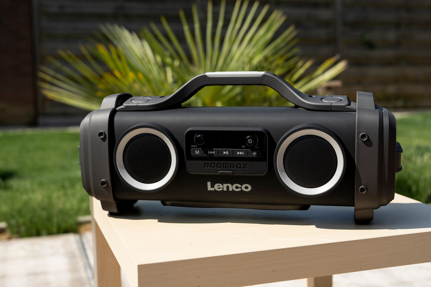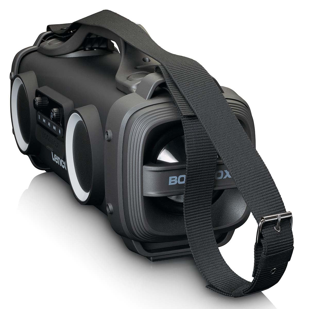 Die Lenco SPR-200BK ist eine tragbare IPX4 Boombox mit FM-Radio und Bluetooth. Sie bietet FM-Radioempfang, so dass Sie den Tag immer mit Ihrem Lieblingsradiosender beginnen können. Über Bluetooth können Sie Ihre Lieblings-Playlisten von Ihrem Smartphone oder Tablet streamen.