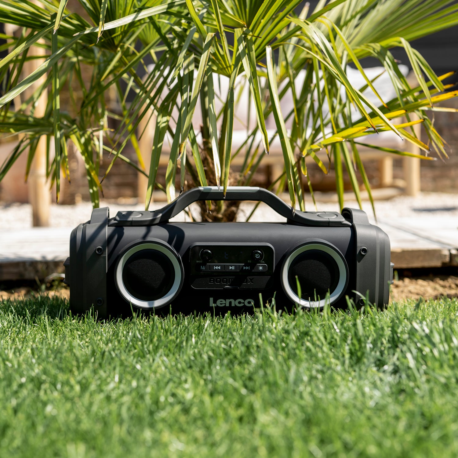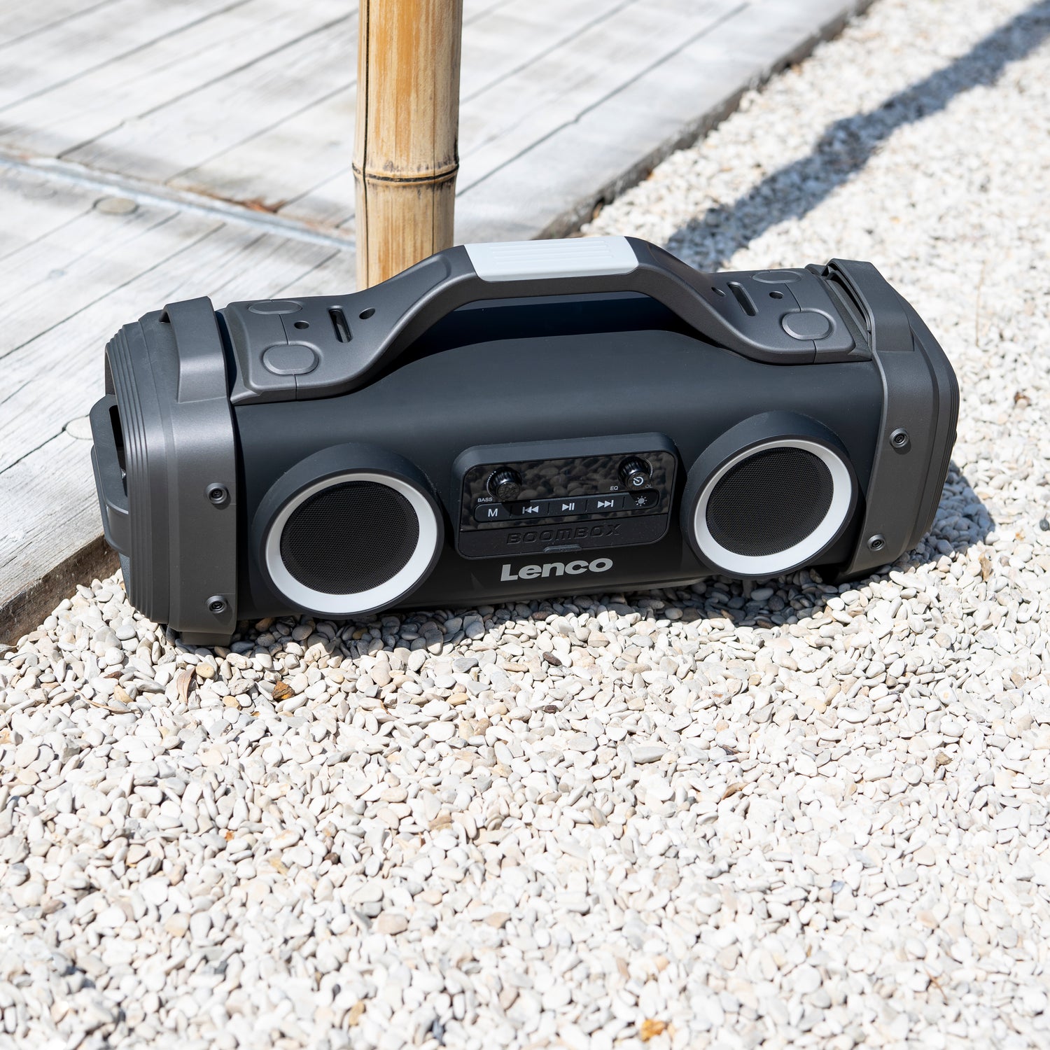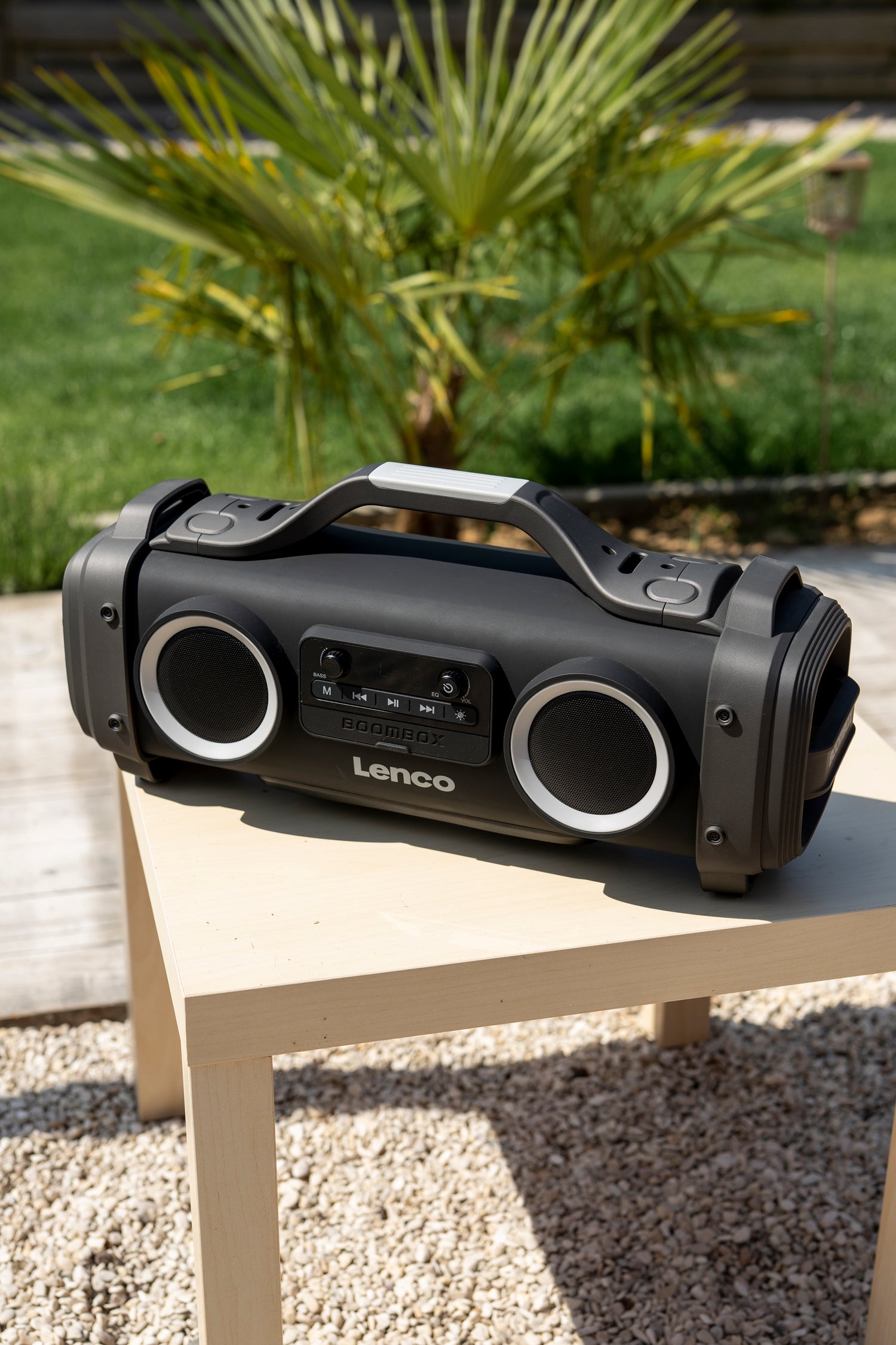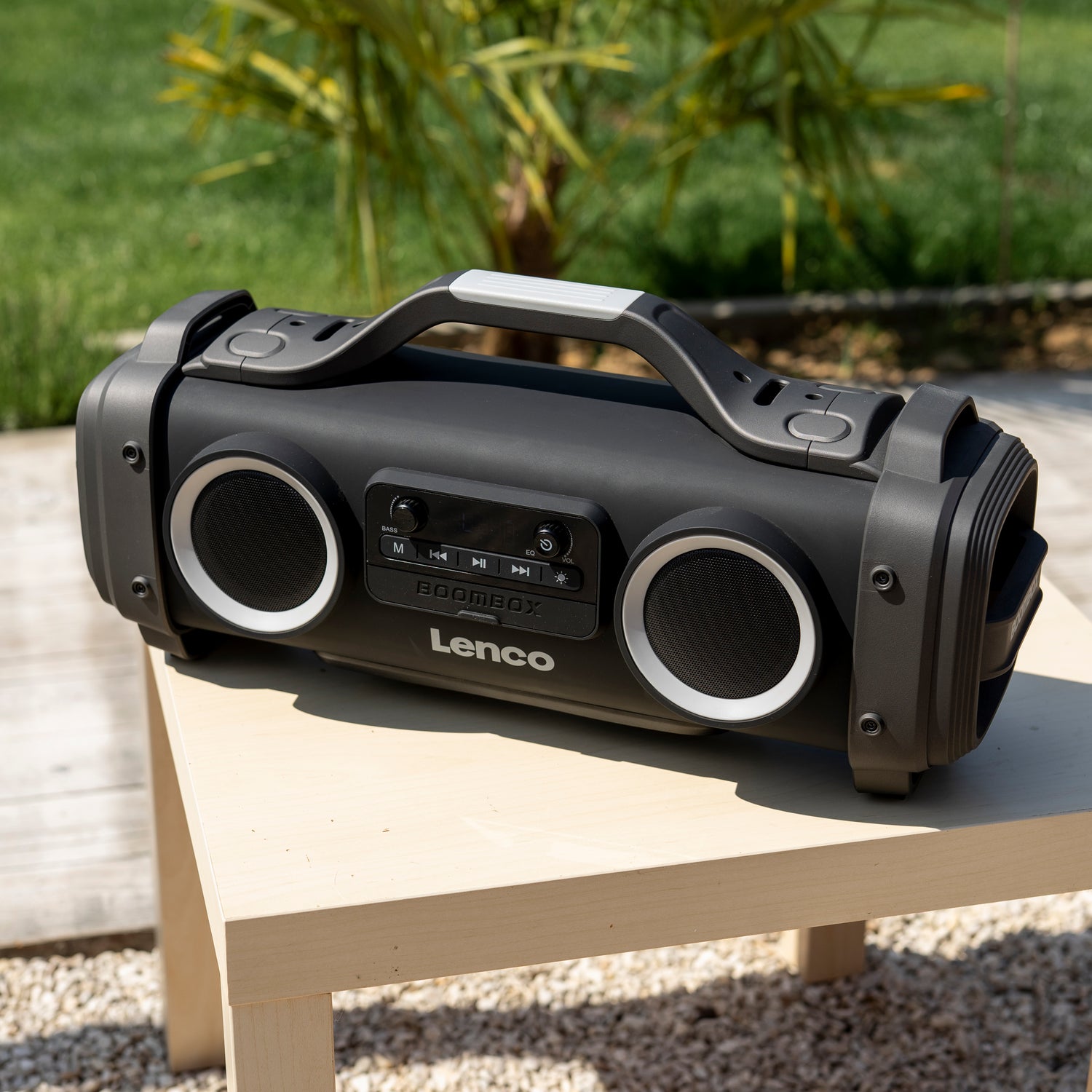Die Lenco SPR-200BK ist eine tragbare IPX4 Boombox mit FM-Radio und Bluetooth. Sie bietet FM-Radioempfang, so dass Sie den Tag immer mit Ihrem Lieblingsradiosender beginnen können. Über Bluetooth können Sie Ihre Lieblings-Playlisten von Ihrem Smartphone oder Tablet streamen.