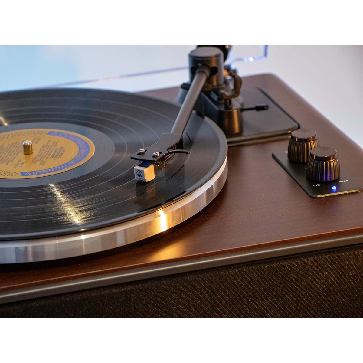 Der Plattenspieler wird mit einer Audio Technica AT-3600 Moving Magnetic Cartridge (MMC) geliefert. Dieses Element, das die Nadel enthält, die den Rillen Ihrer Vinylplatten folgt, sorgt dafür, dass jeder Ton präzise zum Leben erweckt wird.
