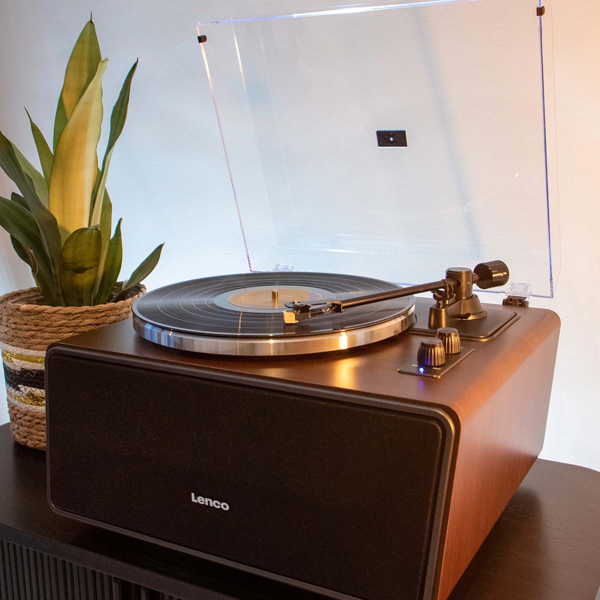 Machen Sie Bekanntschaft mit dem Lenco LS-470WA, einem All-in-One Plattenspieler aus der Expertise-Linie von Lenco mit einem wunderschönen, robusten Design in der eleganten Walnussfarbe. Der LS-470WA ist ein Plattenspieler mit eingebauten Lautsprechern, Riemenantrieb und Bluetooth®, der unter anderem mit einer hochwertigen Audio Technica Cartridge geliefert wird. Die abnehmbare Staubschutzhaube schützt Ihren Plattenspieler vor Staub, während das einzigartige Design und die elegante dunkle Holzoberfläche einen Hauch von Klasse in die direkte Umgebung des Plattenspielers bringen.