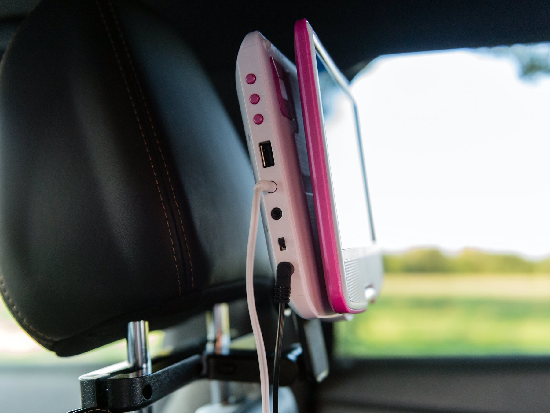 Der Lenco DVP-910 ist ein kompakter DVD-Spieler mit einem 9-Zoll-Bildschirm, welcher um 180° gedreht und gekippt werden kann. Er wird mit Fernbedienung, Kopfhörer, Kopfstützenbefestigung, 12 Volt Adapter und passendem Netzkabel ausgeliefert. Seine Auflösung von 800 x 480 Pixel sorgt für eine ausgezeichnete Bildqualität. Fahren Sie mit Ihrer Familie regelmäßig für ein paar Tage mit dem Auto oder dem Zug weg? Dann ist der Lenco DVP-910 der perfekte Reisebegleiter. Dank der einfachen Bedienung (Fernbedienung mitgeliefert) können sich die Kinder stundenlang ihre Lieblingsfilme ansehen oder Lieblingshörspiele per CD anhören, sodass die Reise wie im Flug vergeht. Zusätzlich wird Ihnen die Möglichkeit der Fortsetzungsfunktion geboten, d.h. Sie können den DVD-Spieler problemlos mitten im Film ausstellen und beim wieder einschalten dort weiterschauen, wo sie aufgehört haben. Über den USB-Eingang können Sie auch Ihre eigenen Videos und Fotos auf dem DVD-Spieler wiedergeben und gemeinsam mit der Familie anschauen. Der DVD-Spieler kann dank der mitgelieferten festen Halterung komfortabel an der Rückseite des Kopfstütze befestigt werden. Der Lenco DVP-910 unterstützt die Videoformat MPEG1, MPEG2 und MPEG4, das Audioformat MP3 und hat das Bildformat JPEG. Das Tonsignal können Sie durch die zwei eingebauten Lautsprecher oder die mitgelieferten Köpfhörer genießen. Der Lenco DVP-910 verfügt über eingebauten Lithium-Ionen-Akku (für ca. 2 Stunden Spielzeit), so dass Sie das Gerät auch ohne Kabel nutzen können. Es werden aber sowohl ein 12 Volt Adapter als auch ein Netzkabel mitgeliefert. Der Bildschirm wird gut gegen Kratzer geschützt, indem Sie den DVD-Spieler einfach zuklappen können, wenn Sie diesen nicht verwenden.Der Lenco DVP-910 ist in Blau/Schwarz und Rosa/Weiß erhältlich.