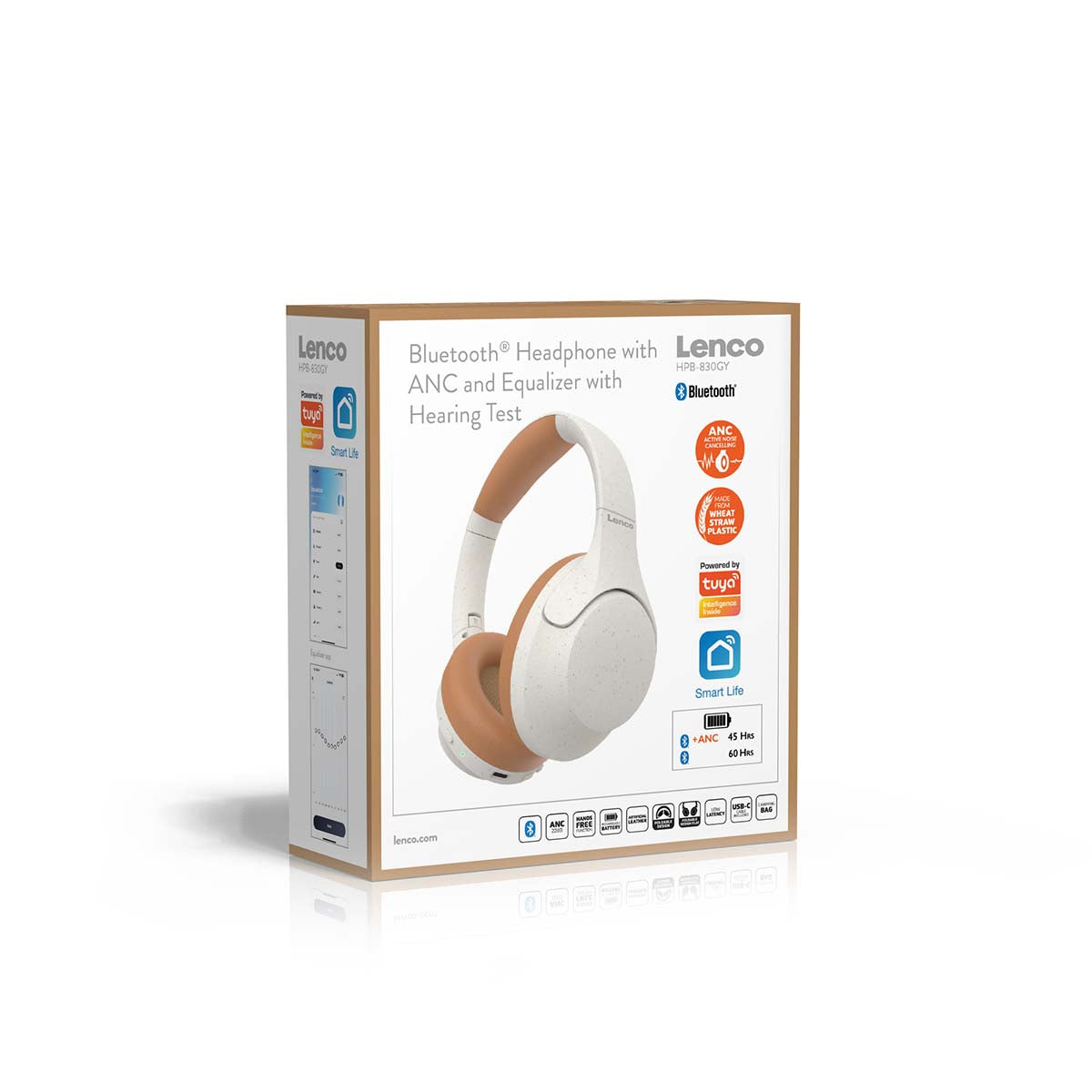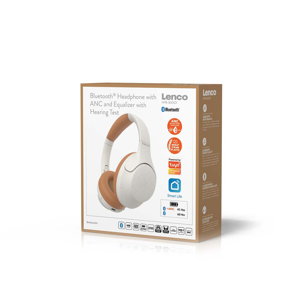 Der Lenco HPB-830GY drahtlose Bluetooth®-Kopfhörer mit Over-Ear Design bietet eine verbesserte Passform, eine verbesserte Klangqualität und noch intelligentere Funktionen. Durch den bequemen und verstellbaren Kopfbügel sowie die angenehmen Ohrpolster sitzt der HPB-830GY gut, was den Kopfhörer für jeden geeignet macht. Dieser Kopfhörer verfügt auch über Active Noise Cancelling (ANC), auch als aktive Geräuschunterdrückung bekannt. So reisen Sie in aller Ruhe oder eliminieren störende Geräusche von außen. Zusammen mit der Option für freihändiges Telefonieren und den eingebauten Mikrofonen macht die Geräuschunterdrückung den HPB-830GY ideal zum Telefonieren. Der Over-Ear-Bluetooth-Kopfhörer hat eine maximale Batterielaufzeit von bis zu 60 Stunden. Der Lenco HPB-830GY hat ein nachhaltiges Gehäuse aus recyceltem ABS und Weizenfasern und wird mit einer schönen Lenco-Aufbewahrungstasche und einem USB-C-Kabel geliefert, mit dem der Kopfhörer aufgeladen werden kann. Die Wahl des HPB-830GY ist daher nicht nur eine Wahl für ausgezeichnete Klangqualität und eine bequeme Passform, sondern auch eine Wahl für Nachhaltigkeit.