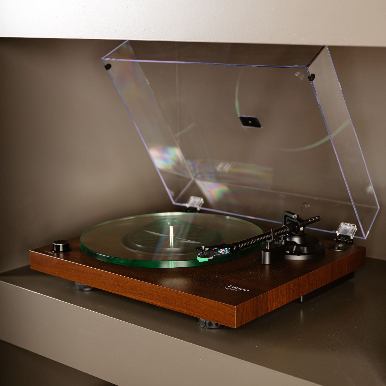 Der LBT-225 hat einen Plattenteller aus Glas, einen Riemenantrieb, einen Cinch-Anschluss und einen Arm aus Kohlefaser mit Gegengewicht. Der Audio-Technica Tonabnehmer AT-VM95E sorgt für einen warmen Klang und Hifi-Qualität bei Ihren wertvollen Schallplatten. Die Kunststoffabdeckung sorgt dafür, dass Ihr Plattenspieler nicht unter einer Staubschicht verschwindet und schützt ihn vor äußeren Beschädigungen.