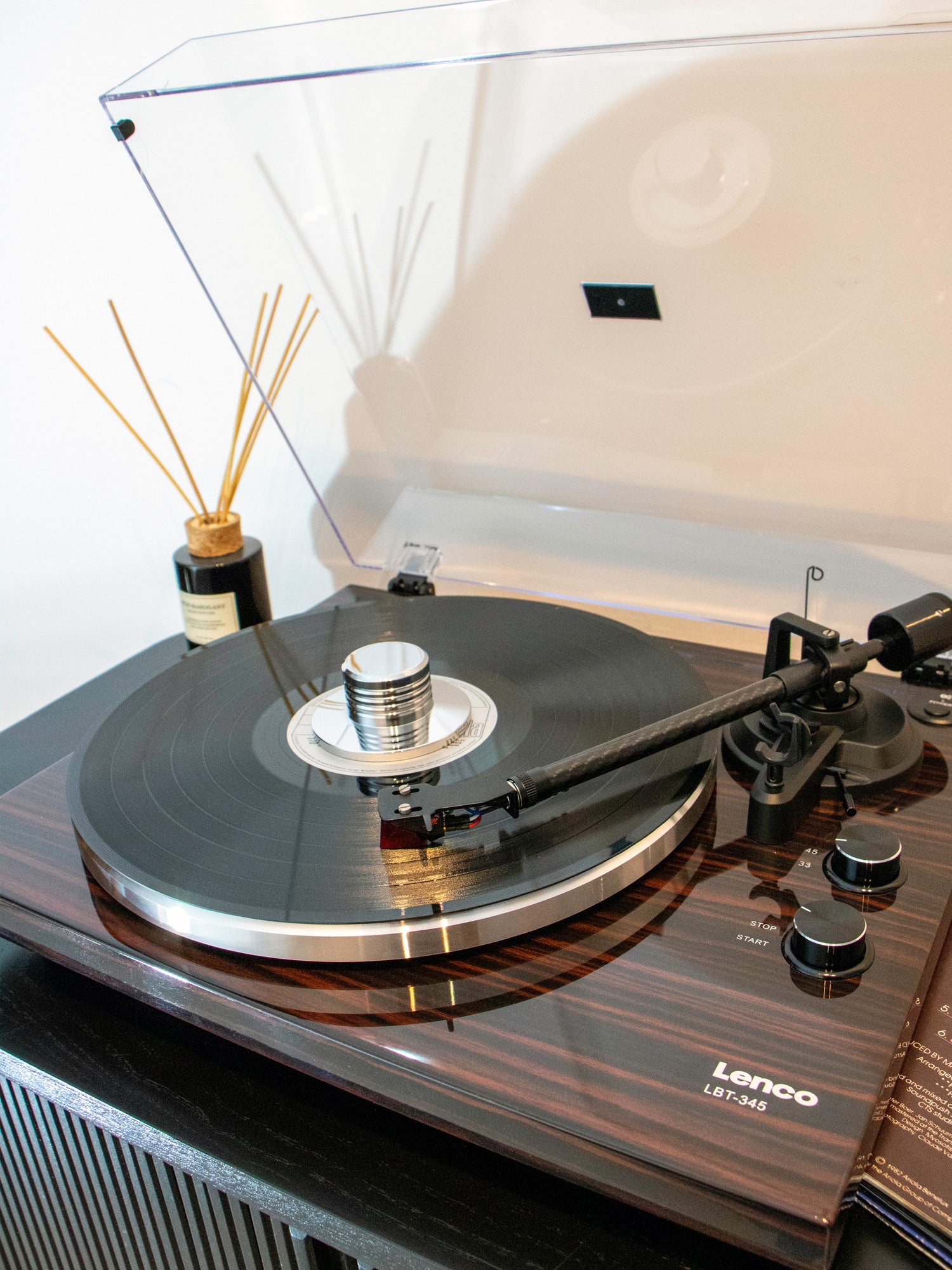 Der LBT-345WA wird mit dem Lenco TTA-076SI geliefert, einem verchromten Plattenspielerstabilisator, auch als Anpressgewicht bekannt, der auf das Zentrum des Plattentellers des Plattenspielers platziert werden kann. Der Stabilisator drückt dann leicht auf die Platte, wodurch ein gleichmäßiger Kontakt mit dem Plattenspieler hergestellt wird. Dadurch werden mögliche Vibrationen reduziert und die Platte bleibt fest an ihrem Platz, was zu einer stabileren Rotation führt. Eine stabilere Rotation trägt wiederum zu einer präzisen und ausgewogenen Klangwiedergabe bei.