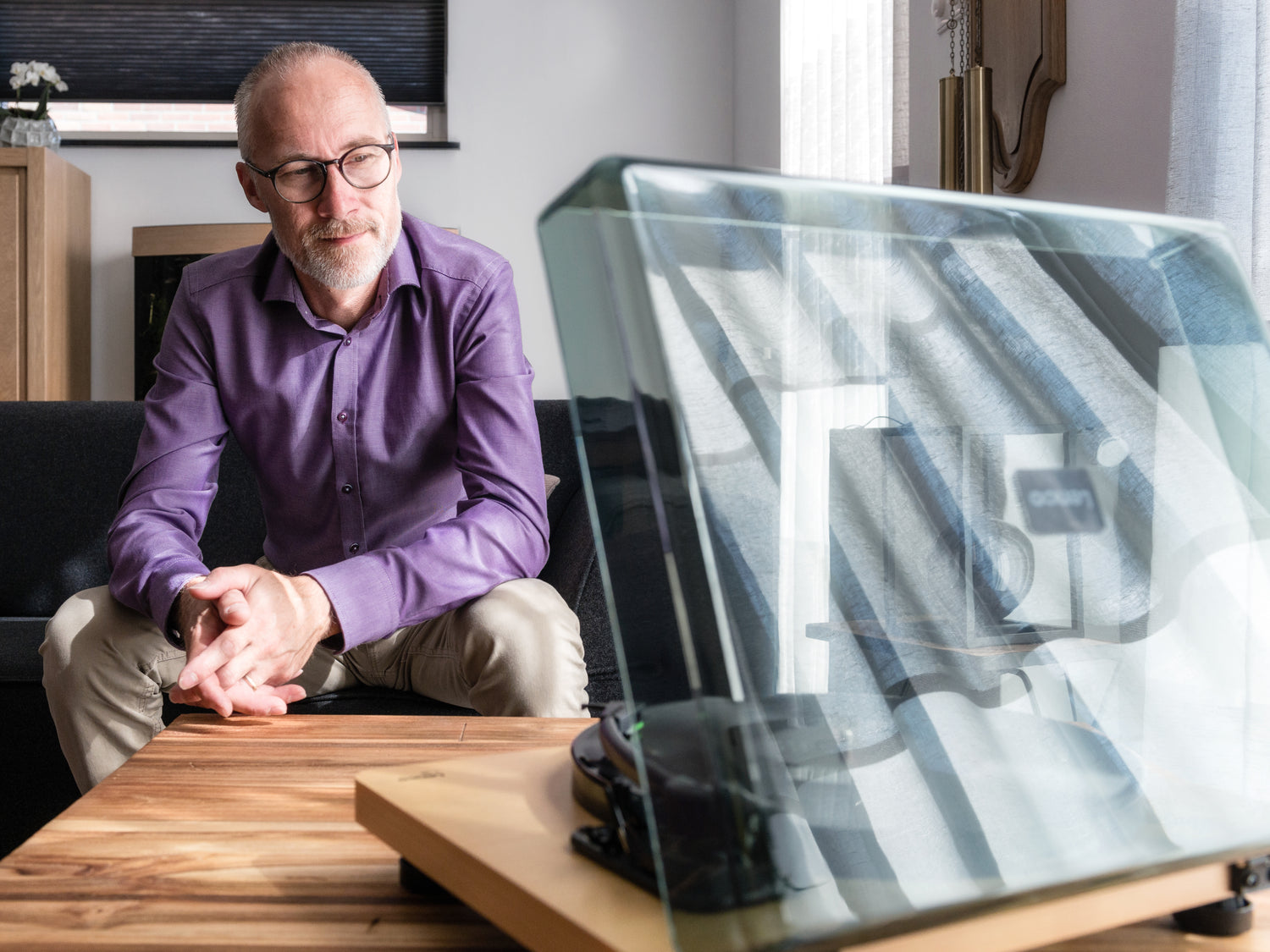 - Drehteller aus Holz mit eingebauten Lautsprechern