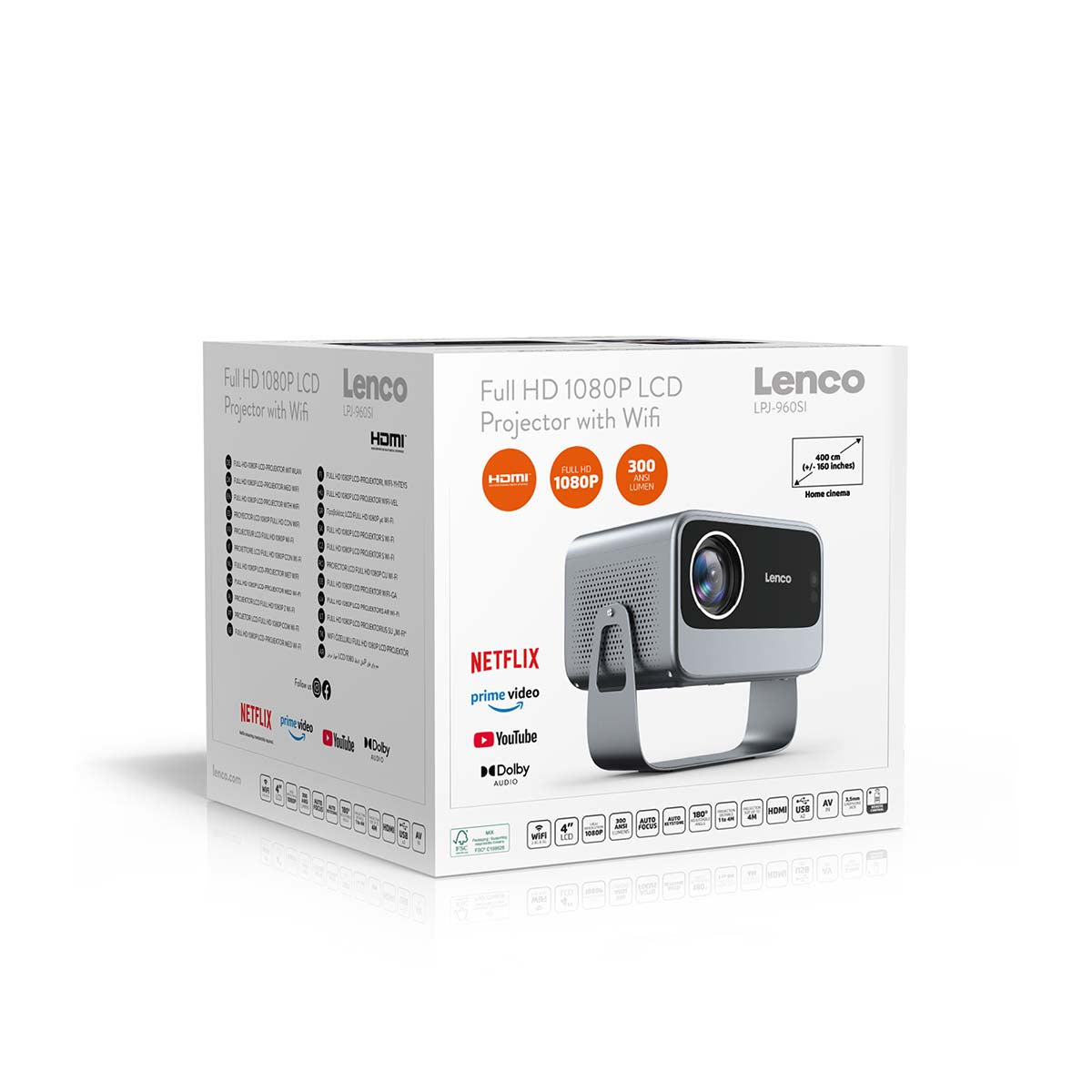 Mit dem Lenco LPJ-960SI Full HD LCD Beamer mit WLAN projizierst du Filme, Serien und Spiele in scharfer Qualität. Der Beamer ist kompakt und sofort einsatzbereit. Einschalten, mit dem 180° drehbaren Standfuß richtig ausrichten und die automatische Fokussierung sowie Trapezkorrektur erledigen den Rest. Dank integriertem WLAN schaust du Netflix, Prime Video und YouTube direkt ohne zusätzliche Geräte. Der integrierte 5-W-Stereo-Sound sorgt für klaren Klang bei jeder Nutzung.
