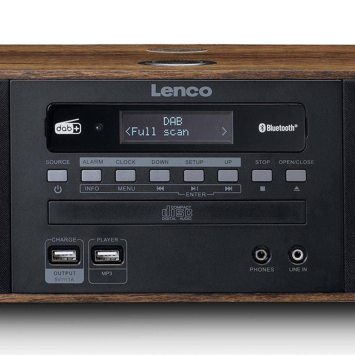 Das DAR-051 von Lenco ist ein Radio, mit dem Sie Ihre Lieblingssongs auf verschiedene Arten abspielen können. So hat dieses Radio Bluetooth, und Sie können es drahtlos mit Ihrem Handy oder Tablet verbinden. Außerdem ist es ein CD/MP3- und USB-Player. Sie können sowohl die rauschfreie DAB+-Radiofunktion als auch das PLL-FM-Radio nutzen. Darüber hinaus verfügt das DAR-051 über eine kabellose Ladestation an der Oberseite des Geräts, mit der Sie Ihr Smartphone kabellos aufladen können.