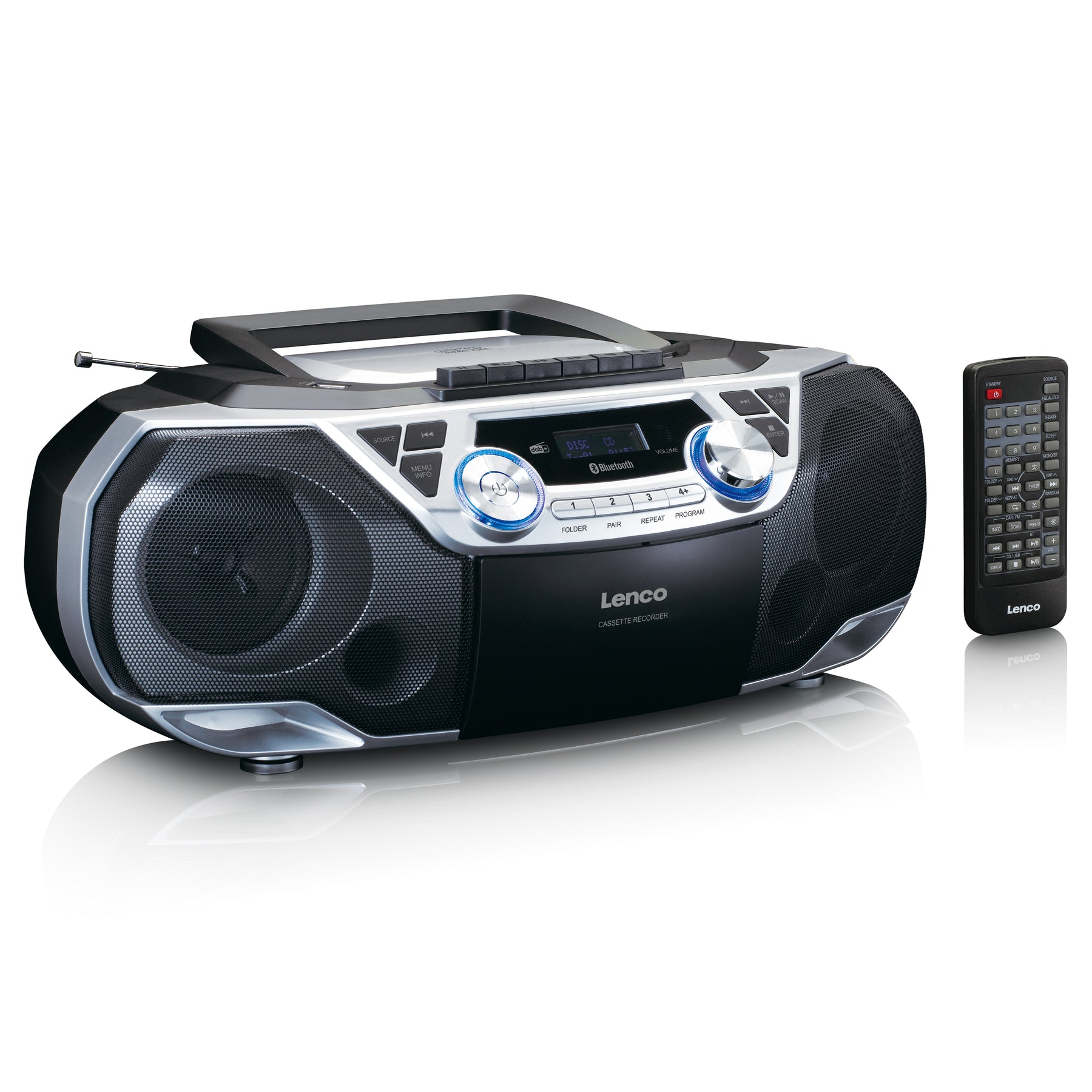 Es verfügt außerdem über einen MP3/CD-Player, einen USB-Player und ein Kassettendeck. Dank der Recording-Funktion können Sie sogar direkt auf Kassetten aufnehmen. Über die Bluetooth 5.0-Verbindung können Sie Ihre Lieblings-Playlist ganz einfach von Ihrem Smartphone oder Tablet streamen. Über den AUX-Eingang können alle Arten von Musikabspielgeräten mit einem 3,5-mm-Stecker angeschlossen werden.