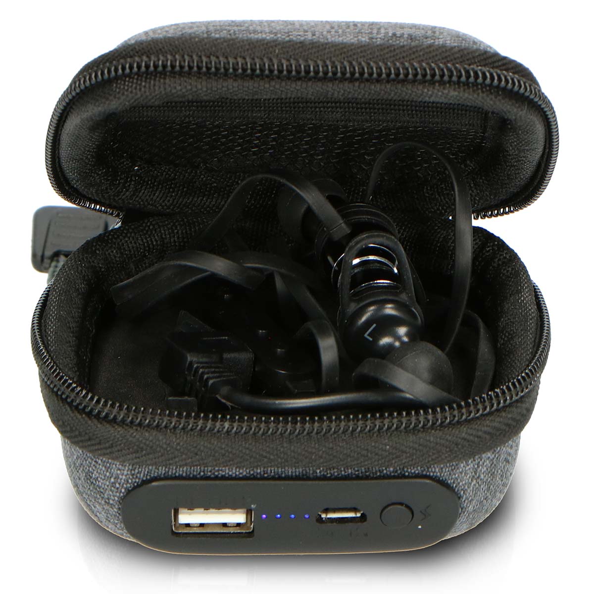 Die Ohrhörer halten 9 Stunden! Wenn die Energie nach 9 Stunden zur Neige geht, schließen Sie die Ohrhörer mit dem mitgelieferten Micro-USB-Kabel an und schließen Sie sie an ein Gerät mit USB-Ladefunktion an. Nach 1,5 Stunden sind die Ohrhörer wieder einsatzbereit. Oder verwenden Sie die mitgelieferte Powerbank-Tasche. Ideal für unterwegs.