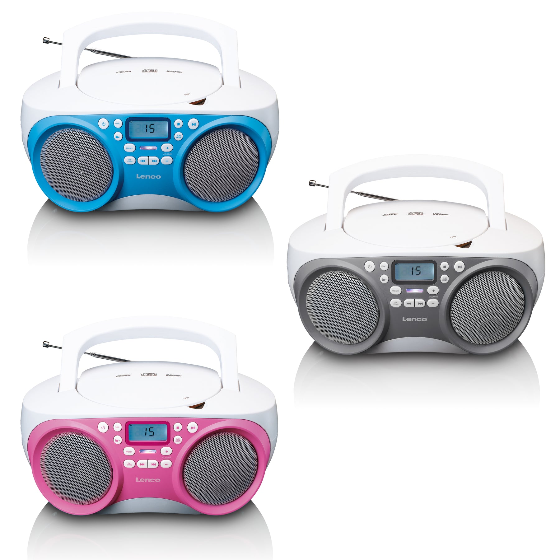 Der Lenco SCD-301 ist in 3 Farben erhältlich: blau, grau und rosa.