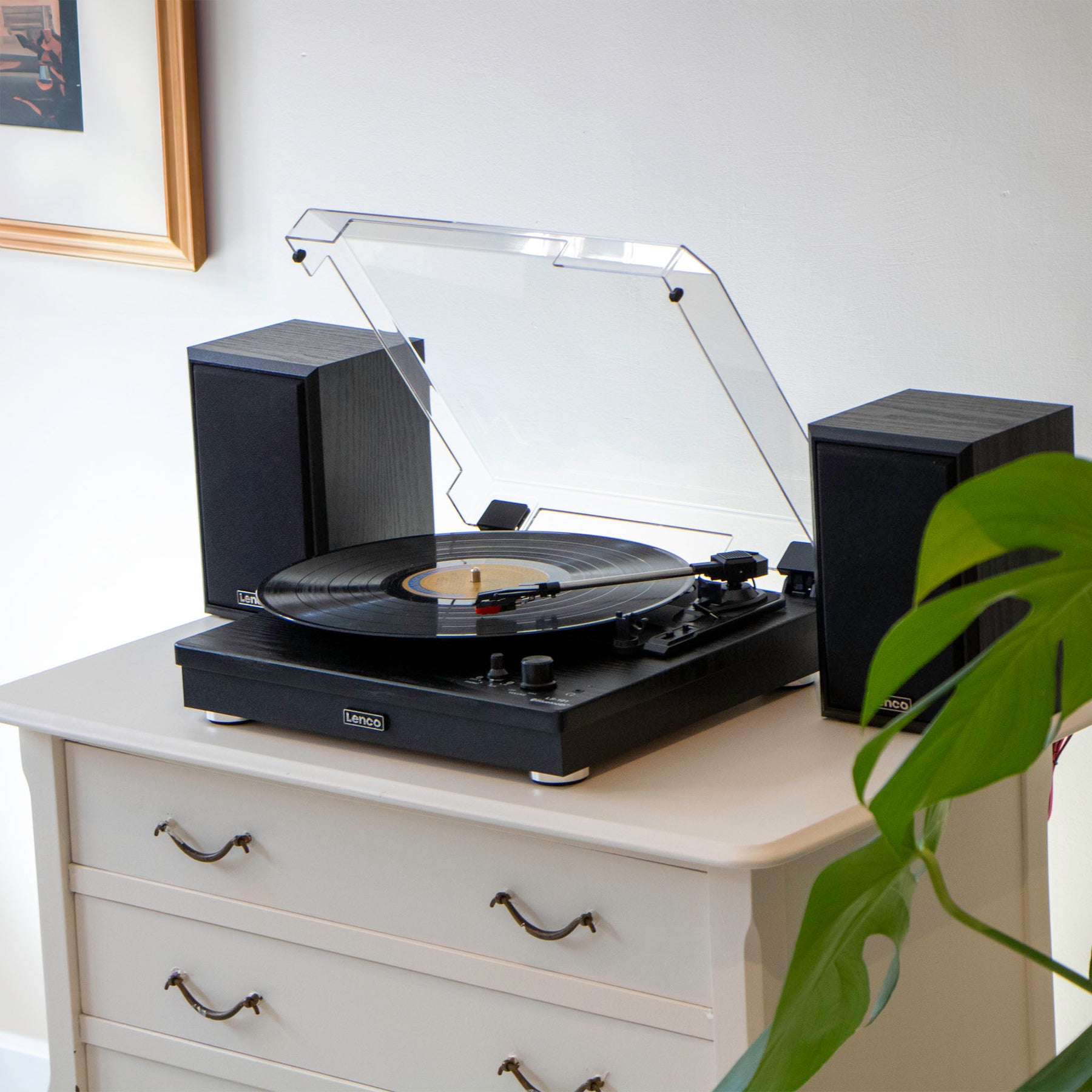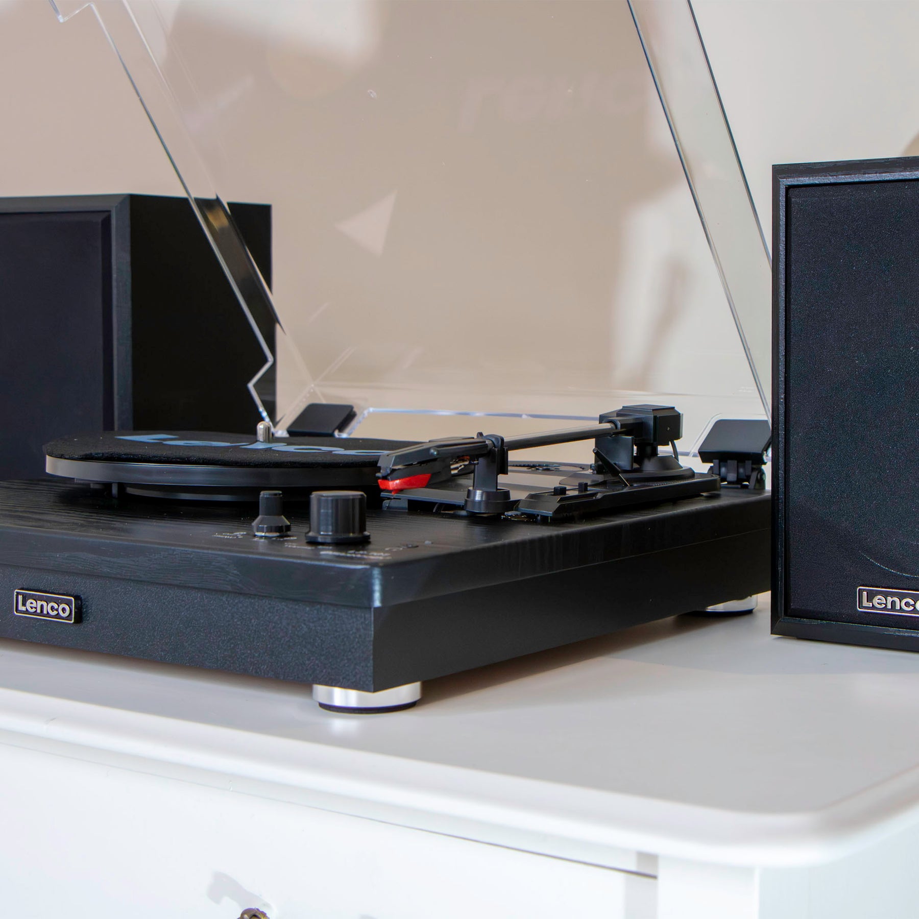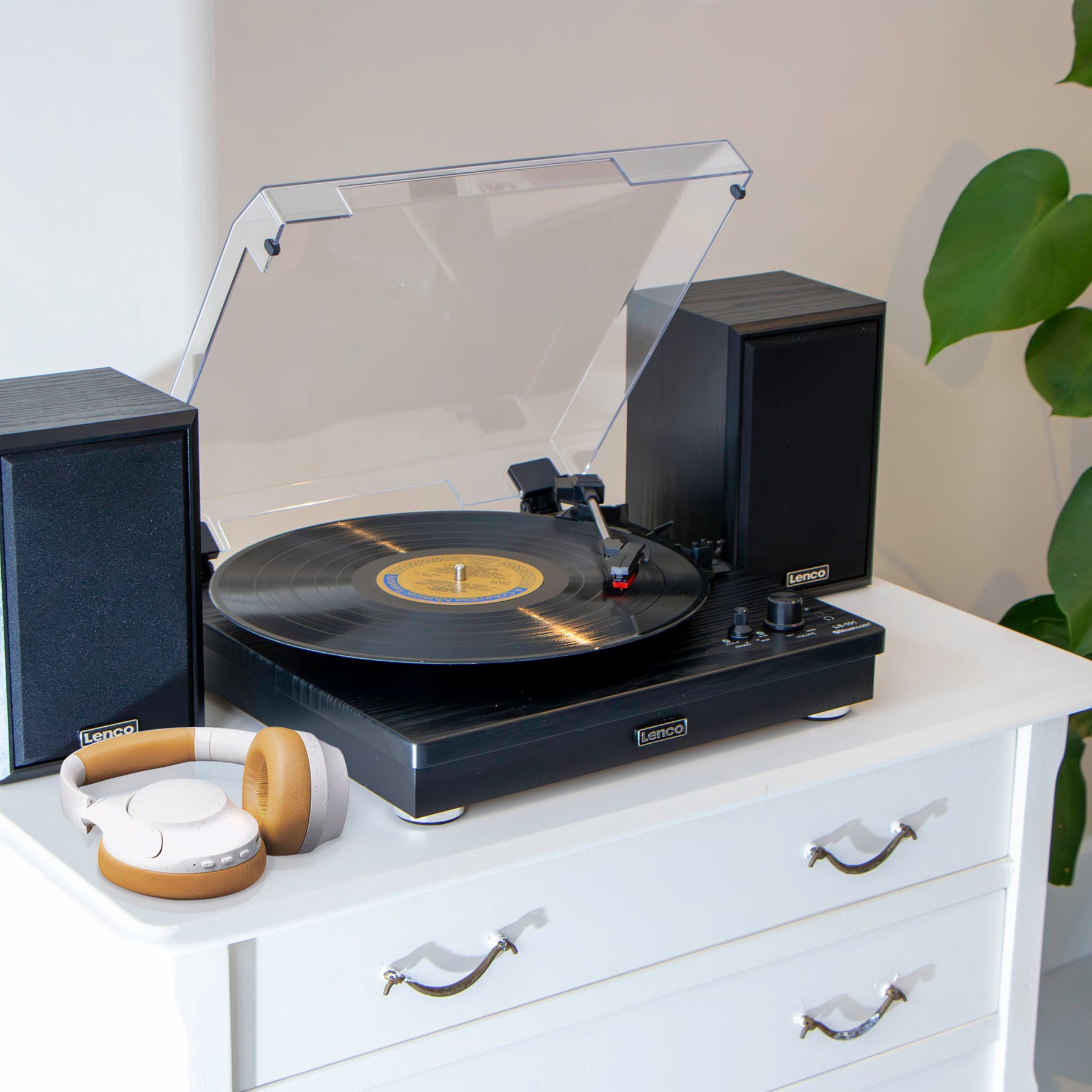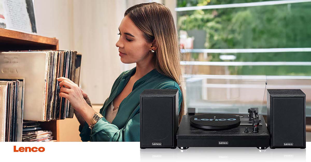 Plattenspieler von Lenco. Dank seiner beiden Lautsprecher mit einer