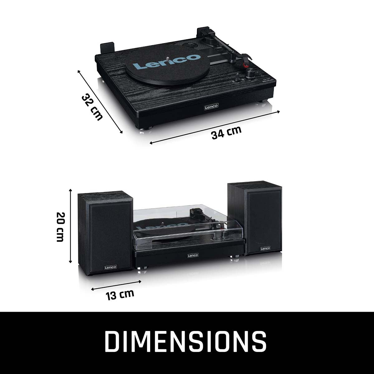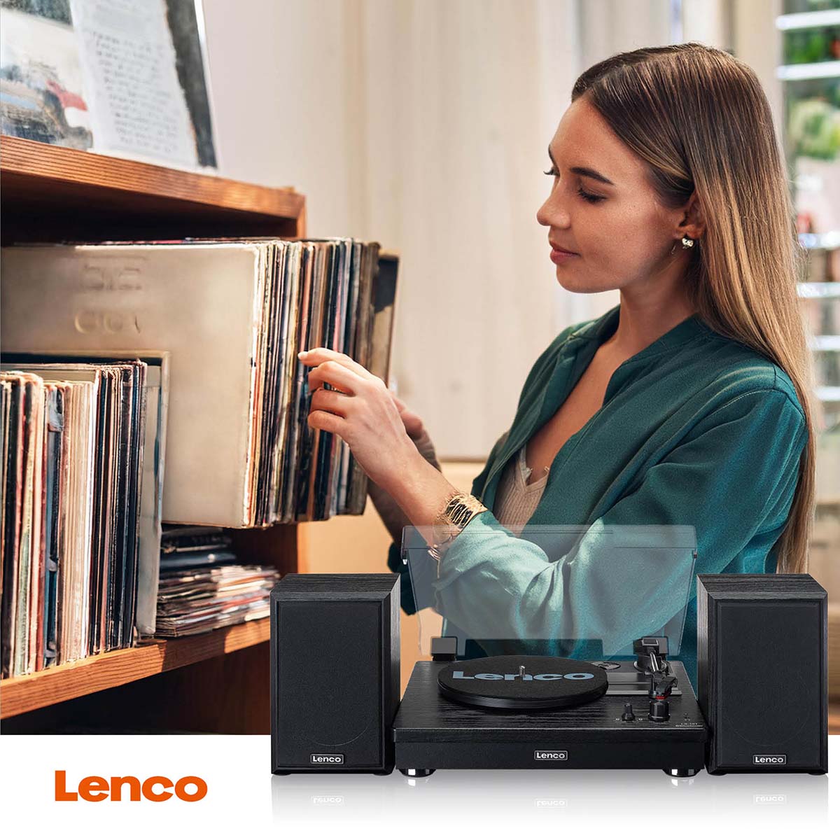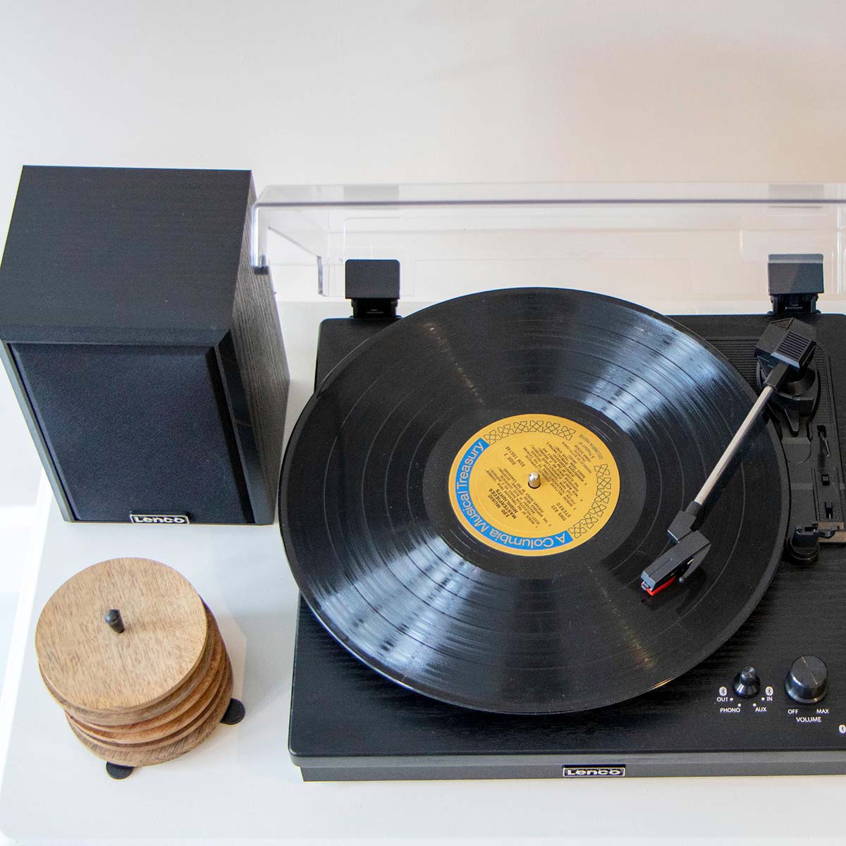 Plattenspieler von Lenco. Dank seiner beiden Lautsprecher mit einer