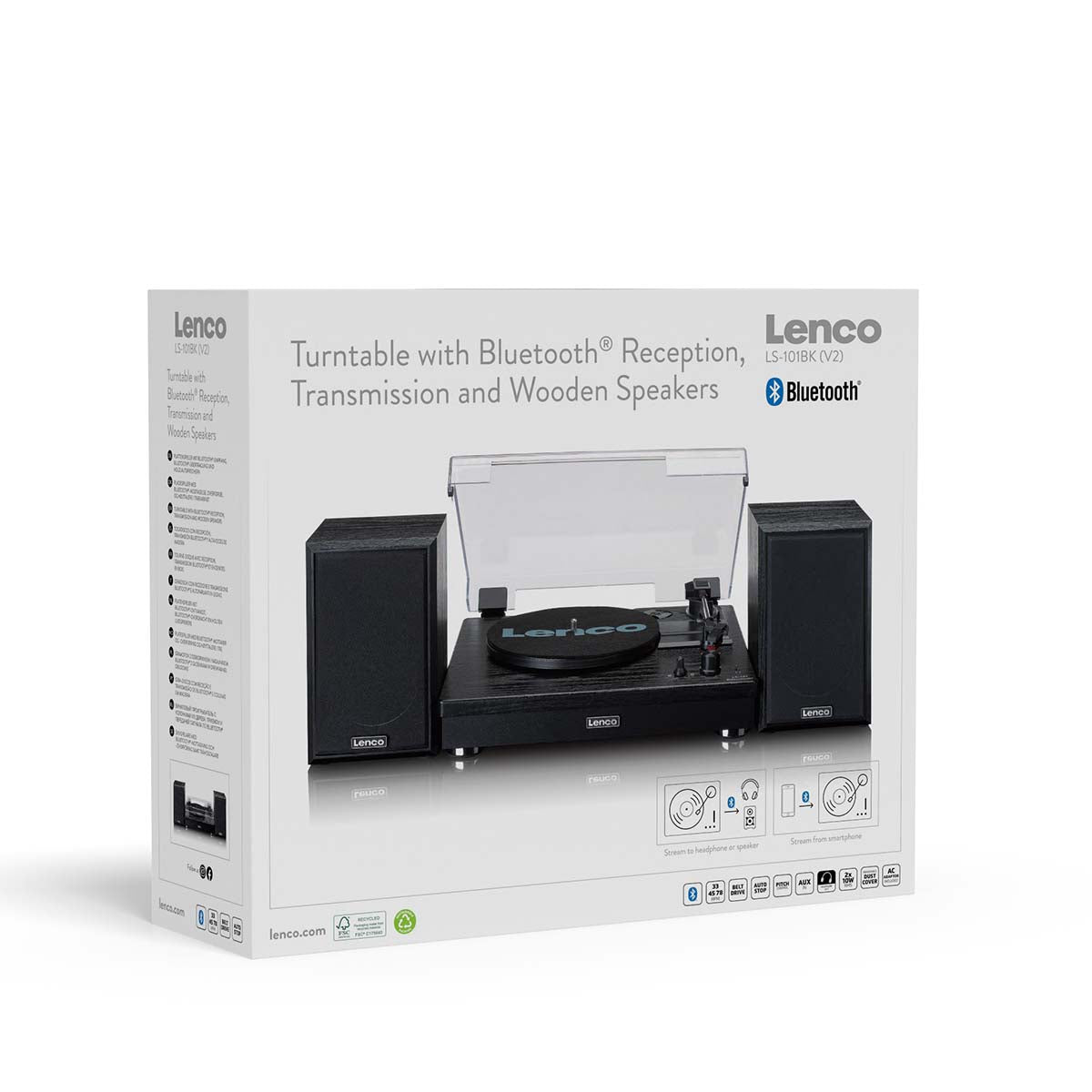 | Drehscheibe mit Bluetooth® | Ja, Stream zur Drehscheibe, Ja, auf externen Tonträger streamen |