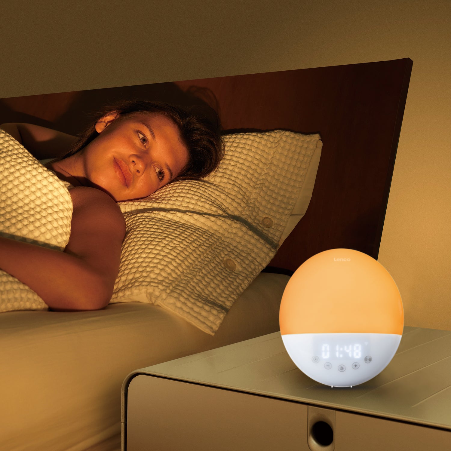 Mit dem SMART-Licht-Wecker CRW-110WH von Lenco schlafen Sie schnell ein und wachen entspannt wieder auf. Der Wecker simuliert einen Sonnenuntergang am Abend und füllt den Raum mit einem Sonnenaufgang am Morgen. Wenn die Lichtintensität langsam zunimmt und die Farbe wechselt, wachen Sie nach und nach auf. Die Beleuchtung ist in 30 Intensitäten und verschiedenen Farben einstellbar.