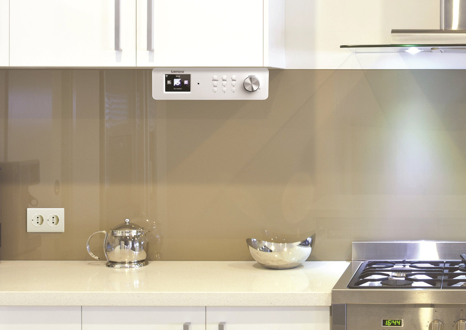 Das Lenco KCR-14 ist ein Internet-Küchenradio mit FM/RDS-Radio. Das Küchenradio hat ein schönes, schlankes Design und dank der deutlichen Knöpfen und des hellen Farbdisplays ist das Radio einfach zu verwenden. Die Möglichkeiten dieses weißen Alleskönners sind endlos: Sie können über die Internetfunktion die Wettervorhersage anschauen, tausende Radiosender anhören und morgens mit Ihrer Lieblingsmusik geweckt werden. Fürs Kochen und Backen hat dieses Radio auch einen Countdown Timer.