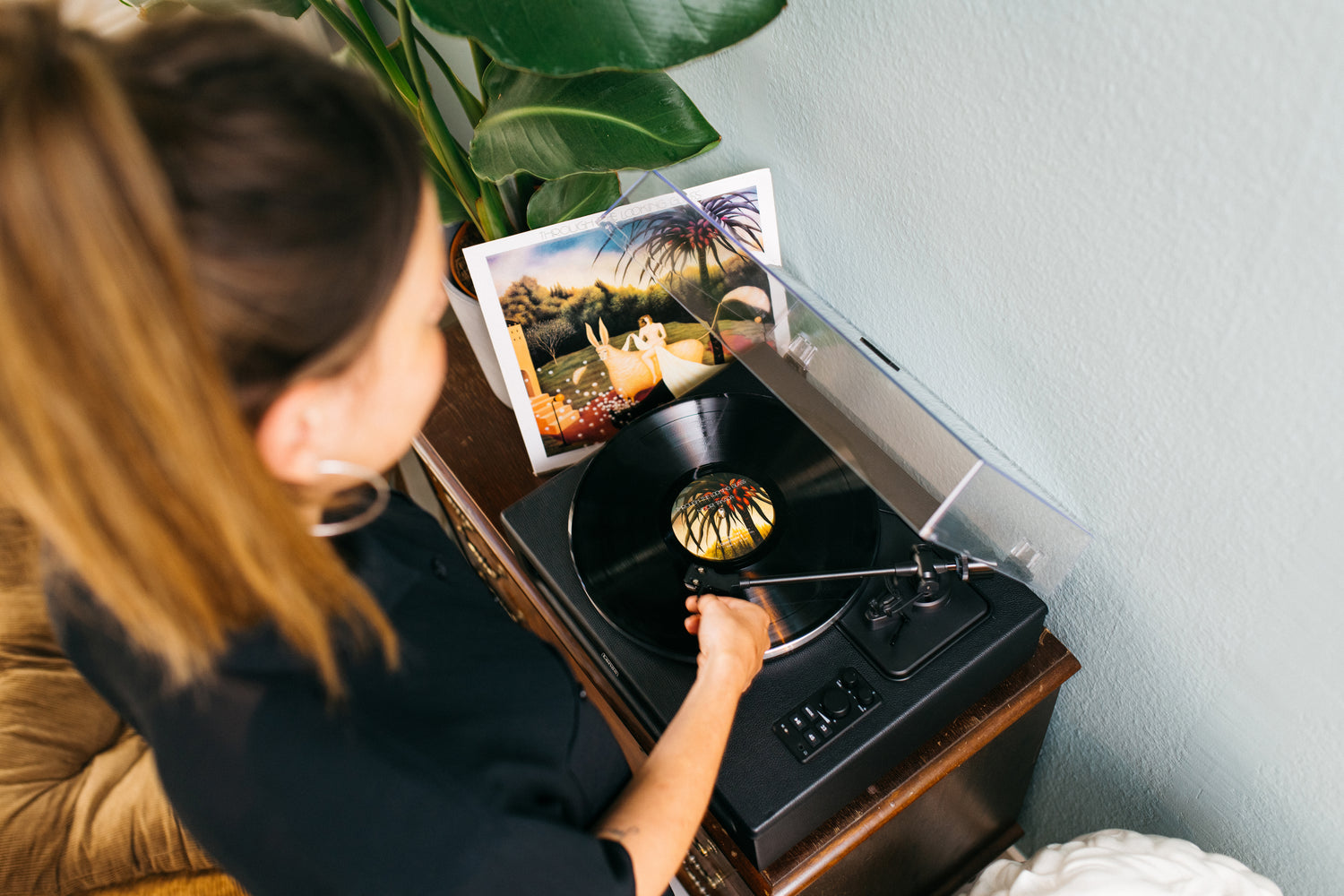Der Lenco LS-430 ist ein Plattenspieler mit eingebauten Lautsprechern. Die 4 Lautsprecher, 2 x 15 Watt und 2x 10 Watt, sorgen für einen ausgewogenen Klang. Der Plattenspieler ist einfach zu bedienen, man muss ihn nur einstecken und schon kann man seine Lieblings-LP genießen! Oder streamen Sie Ihre Playlist von Ihrem Smartphone oder Tablet über Bluetooth 5.0 auf die Lautsprecher des Plattenspielers. Wenn Sie eine Pause einlegen und sich bei Ihrer Lieblingsmusik entspannen möchten, schließen Sie einfach einen Kopfhörer an.