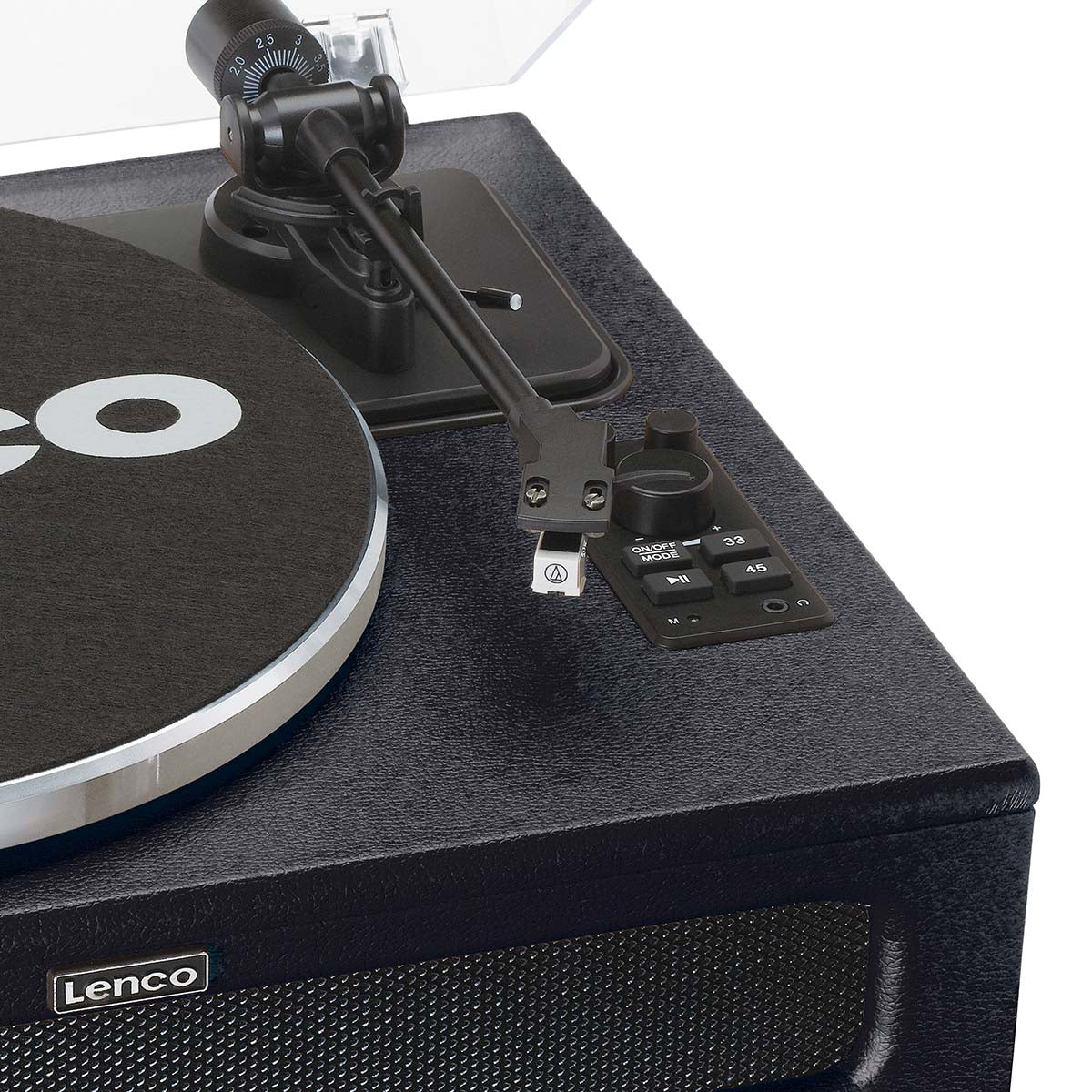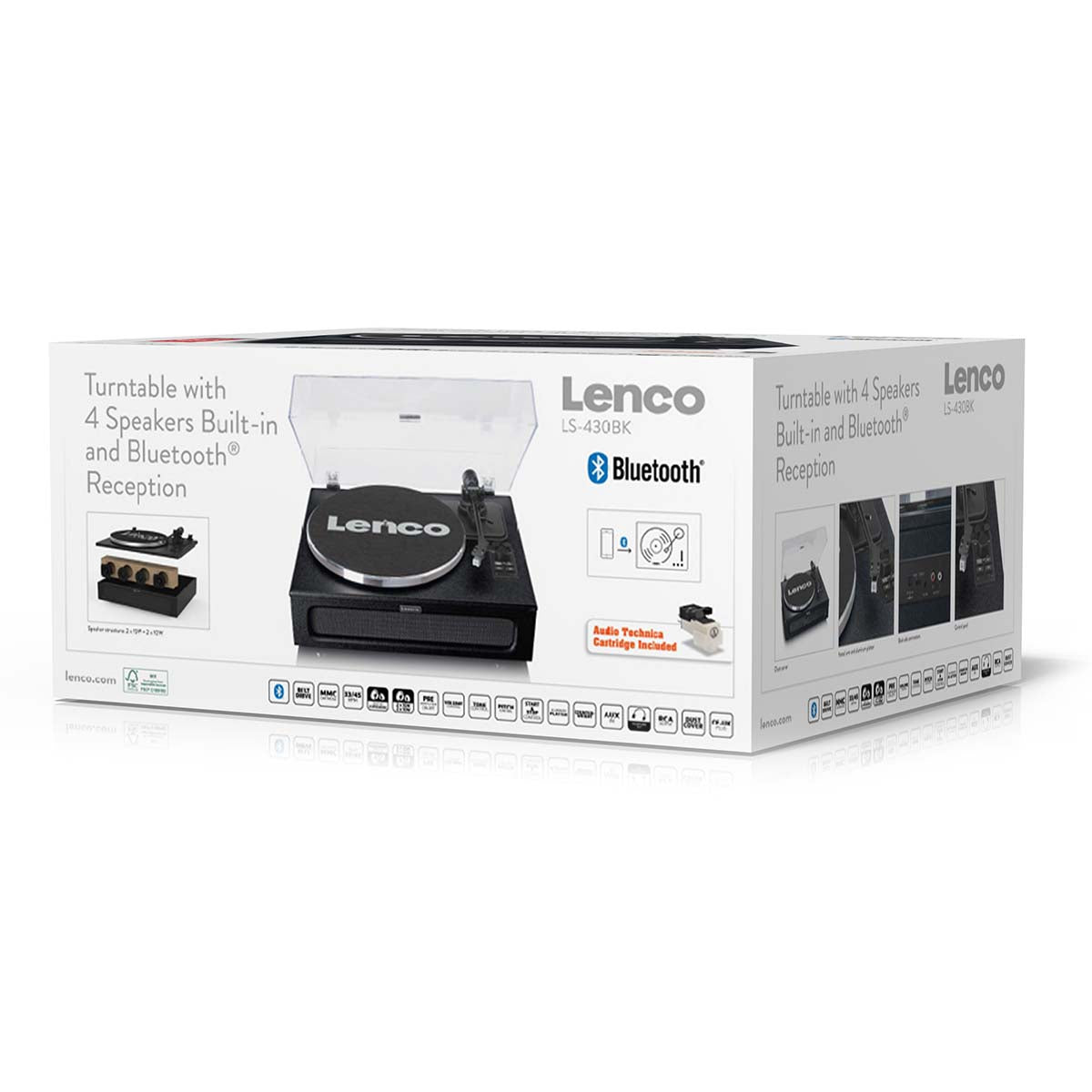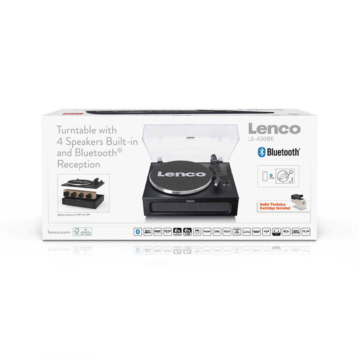 Lenco LS-430BK - Plattenspieler mit 4 eingebauten Lautsprechern - 40 Watt RMS - Bluetooth® - Kunstleder - Schwartz - Schwarz