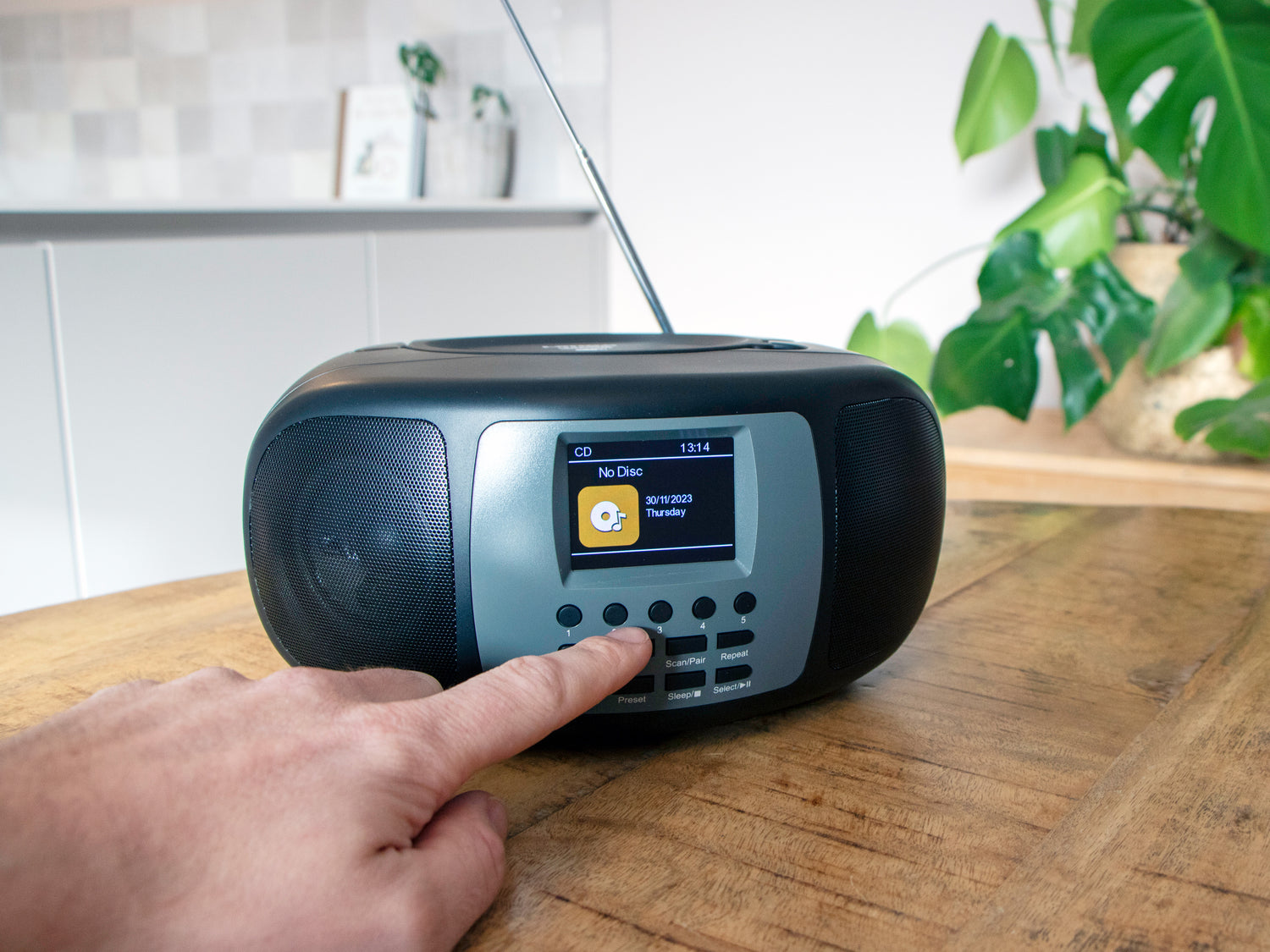 Der SCD-860BK ist mit einem großen LCD-Display von 2,4 Zoll ausgestattet. Das Farbdisplay auf diesem Radio erhöht nicht nur die funktionalen Aspekte, sondern fügt auch einen Hauch von Modernität zur Gesamtästhetik des Radios hinzu. Das Farbdisplay bietet eine klare und scharfe Anzeige von Informationen wie Senderinformationen und Titeldetails.