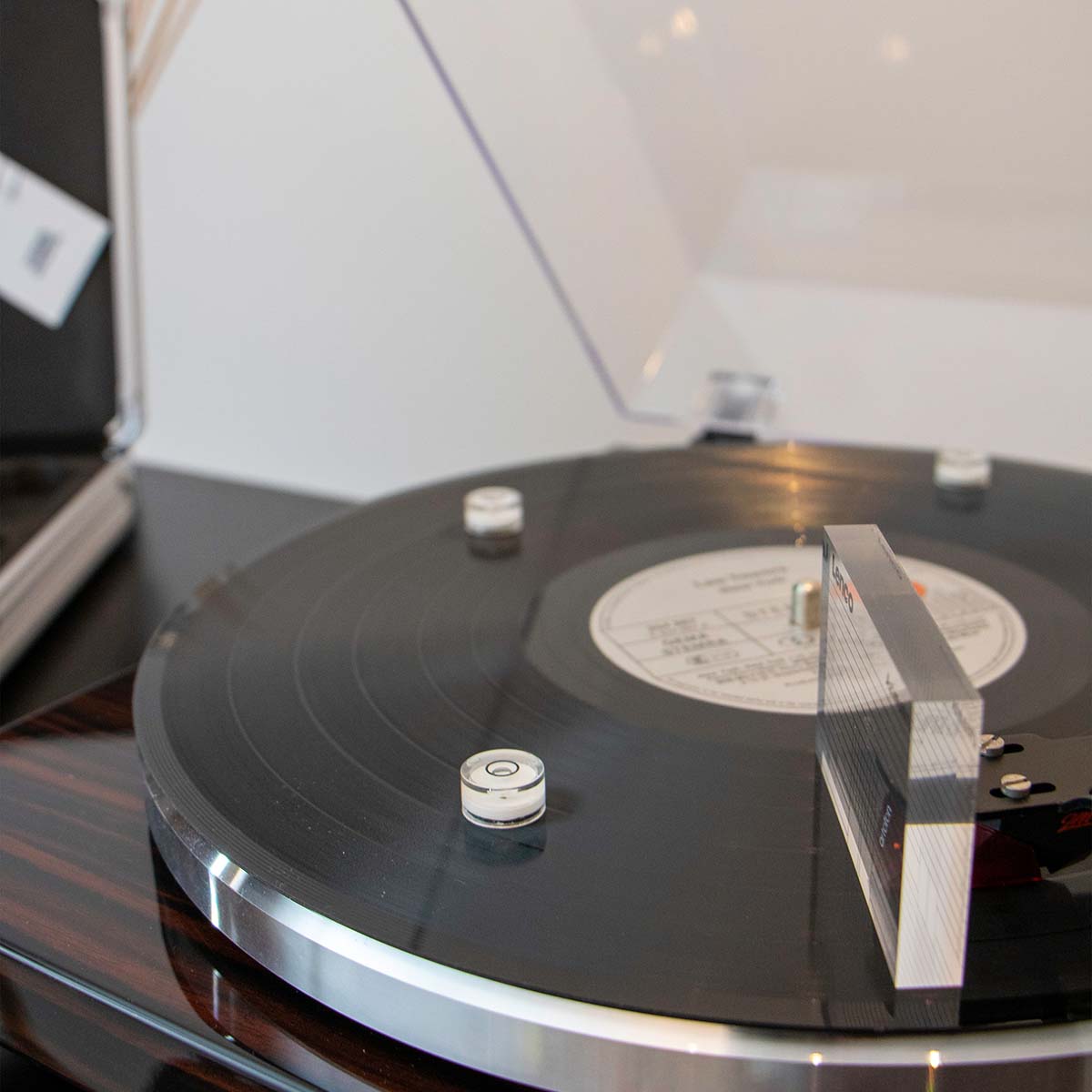 Mit den vier kleinen Wasserwaagen kannst du leicht überprüfen, ob die einzelnen Teile des Plattenspielers korrekt zueinander montiert sind. Sie können einzeln verwendet werden, um die richtige Position des Tonarms im Verhältnis zur Plattentellerbasis zu überprüfen. Für den leidenschaftlichen Plattenspielliebhaber sind diese vier kleinen Wasserwaagen eine wertvolle Ergänzung für eine perfekt ausgewogene Hörumgebung.