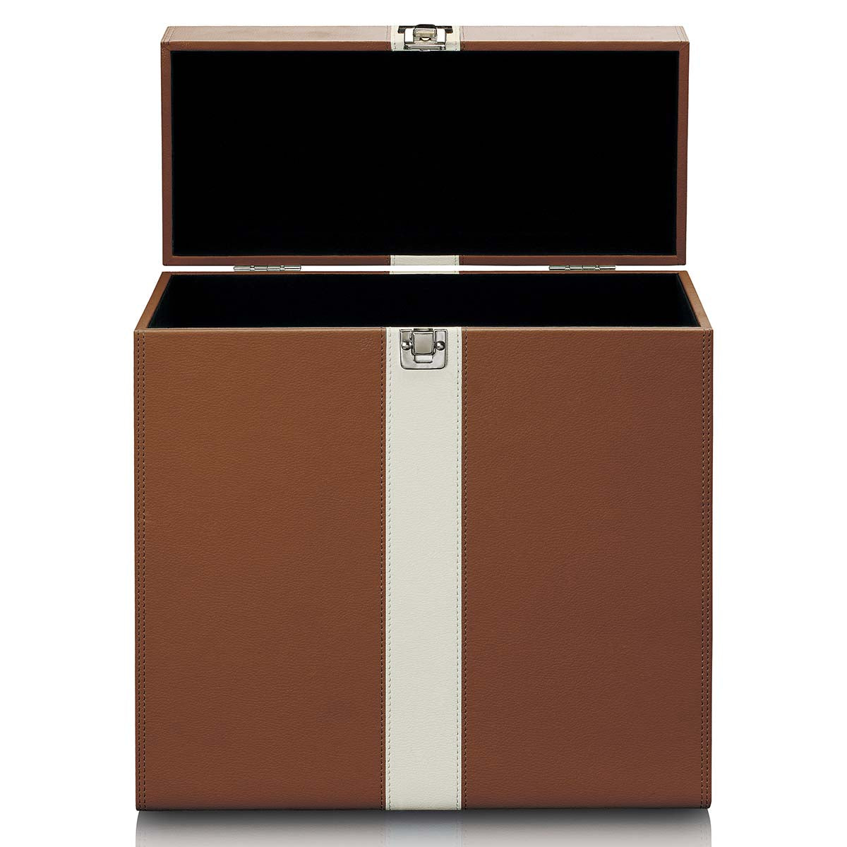 Dieser Plattenkoffer hat ein Kunstlederdesign, das zur Verzierung mit einem Streifen in der Mitte versehen ist. Die Innenseite ist mit weichem Filz für den ultimativen Schutz Ihrer Schallplatten versehen. Der Griff und der Verschluss des Koffers sind aus Metall.